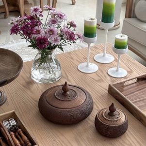 از چوب با کیفیت ملچ و به قطر 28 سانت و ارتفاع 8 سانت است.