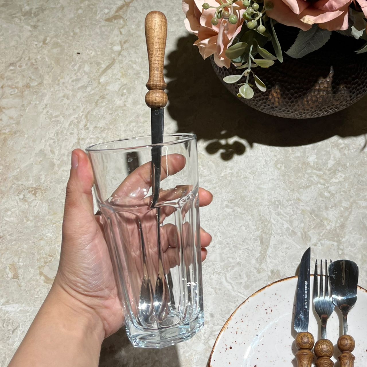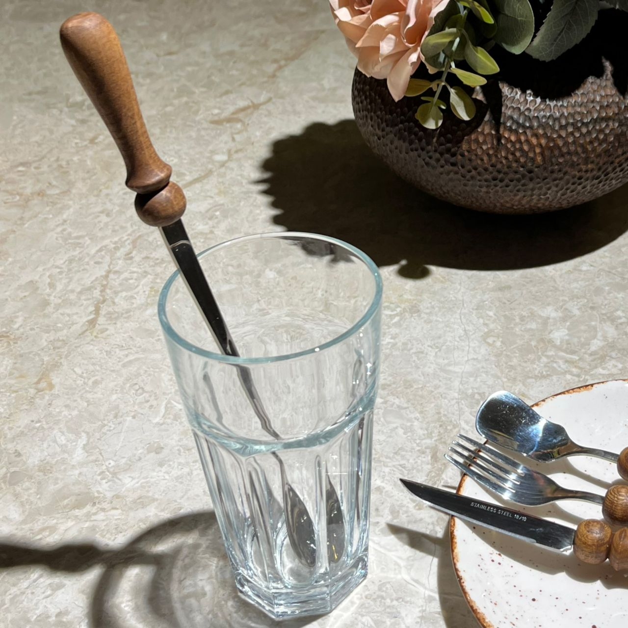 *طول قسمت استیل کار بلند است و دسته چوبی در لیوان شربت خوری نمی رود.