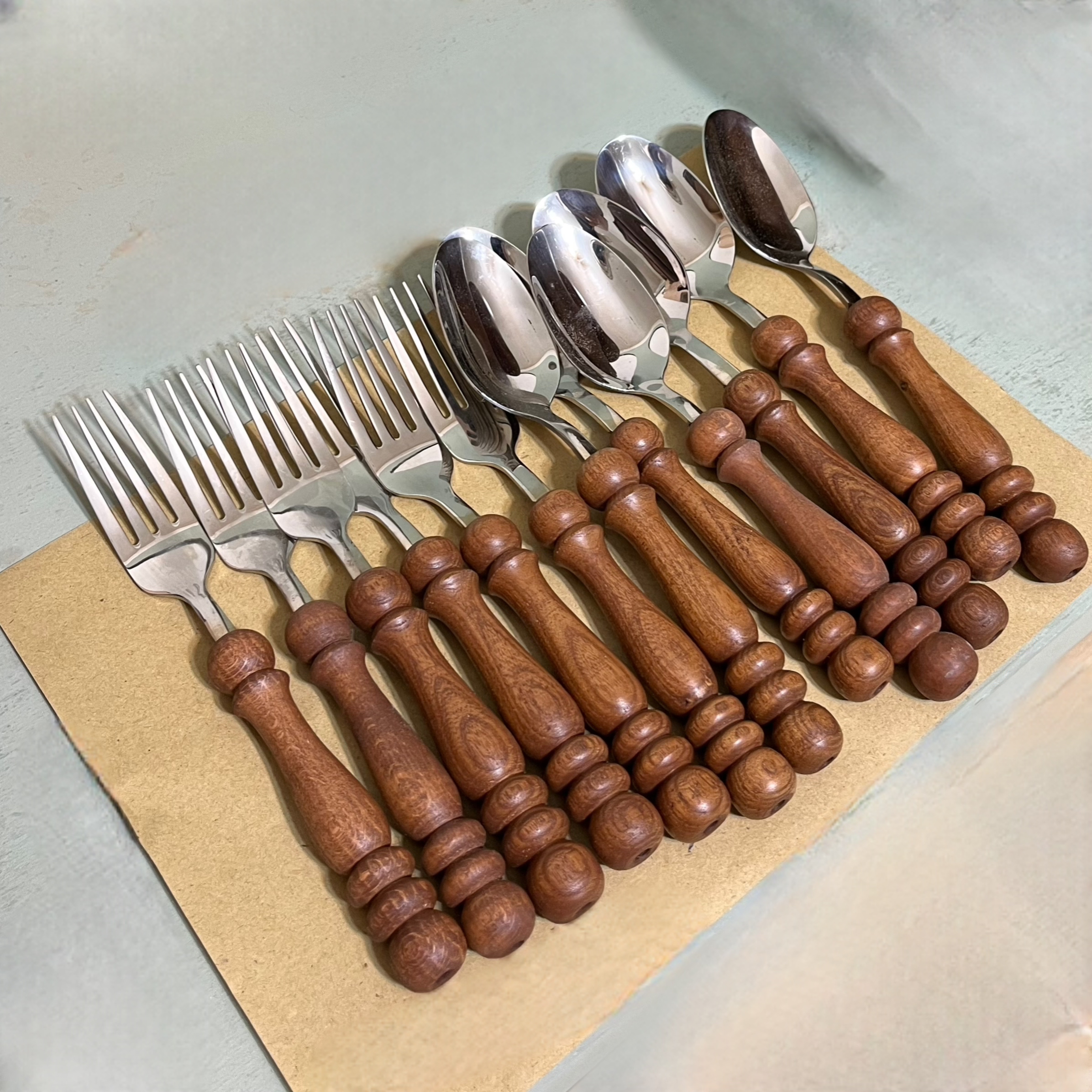 تعداد : 6 عدد قاشق غذاخوری و 6 عدد چنگال غذاخوری